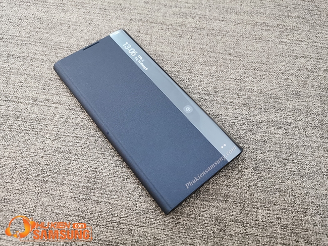 + Thiết kế bề mặt bao da Clear View Note 10 chiếm đến 90% là da công nghiệp cao cấp. Chỉ có 10% nhỏ được làm bằng nhựa cứng trong suốt để hiển thị % Pin, ngày giờ và các thông báo