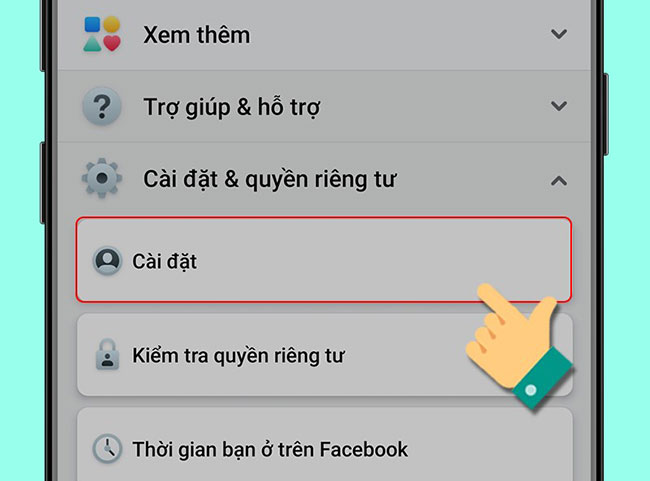 Bước 1: Vào ứng dụng Facebook bằng điện thoại của bạn > sau đó chọn vào phần mở rộng ký hiệu dấu 3 gạch > Cài đặt và quyền riêng tư > Cài đặt.