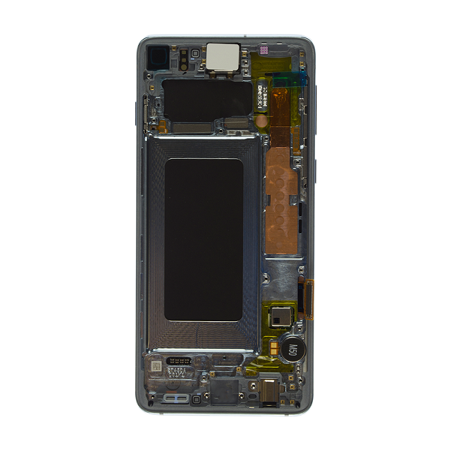 - Màn hình nguyên khối Samsung S10 là dòng linh kiện được hãng Samsung sản xuất để thay thế khi màn hình đi theo máy bị vỡ. Màn hình S10 được sản xuất chỉ mỗi màu đen, còn viền được sản xuất các màu như đen, trắng và xanh.